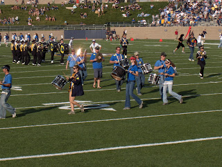 We had very good seats that were out of the sun, although it didn't matter because the weather was absolutely gorgeous. Another special treat is that we weren't seated too far from the Alumni marching band so Gianna loved dancing along when they played during timeouts. I decided to just play for the half-time show and after the game and to sit with Justin and Gianna during the game.
