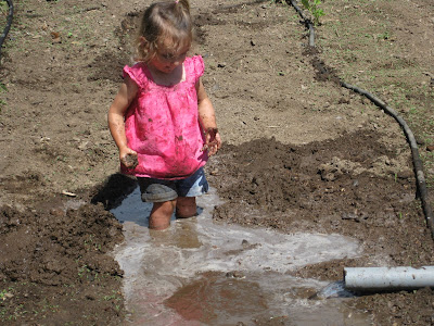 While we were in Santa Rosa my dad needed to drain the water tank. Gianna was happy to make good use of the mud that was a result. It was definitely a photo op. We loved watching her play in the mud, and she loved playing with Poppy and then later on her own. Luckily it didn't disturb my mom's garden too much :)And getting cleaned up afterwards: